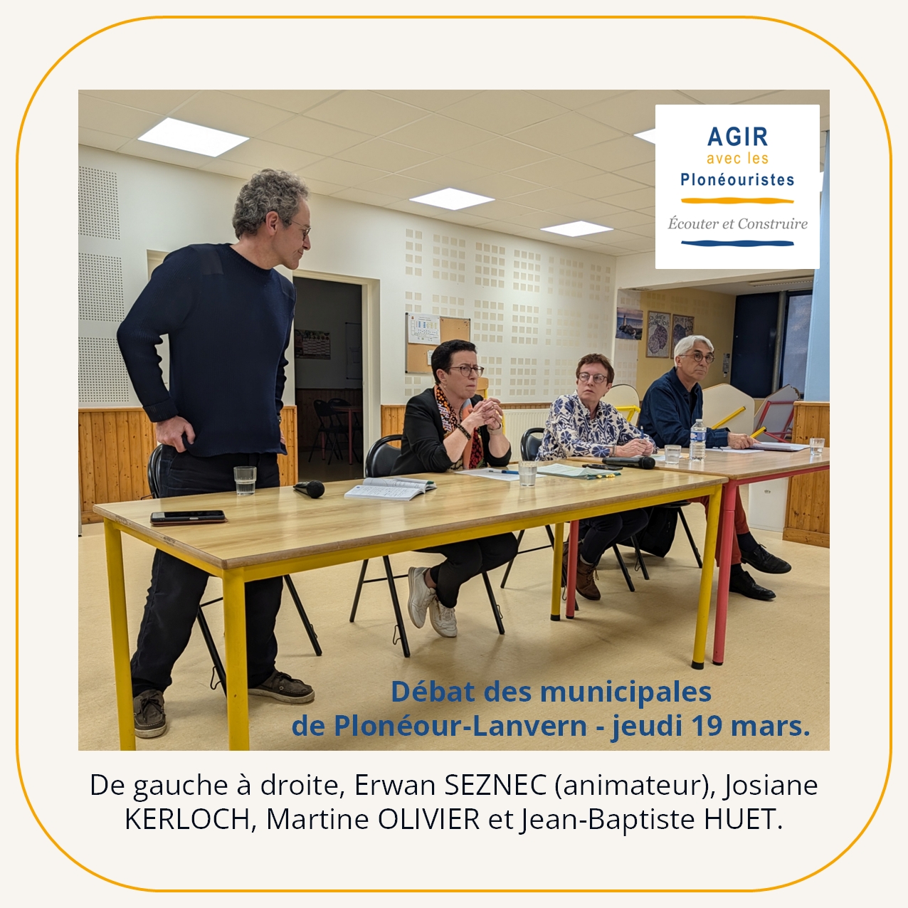 Un débat a réuni Martine OLIVIER, tête de liste « AGIR avec les Plonéouristes » et les deux autres candidats, Josiane KERLOCH et Jean-Baptiste HUET. Le débat était animé par Erwan SEZNEC.